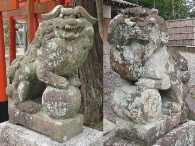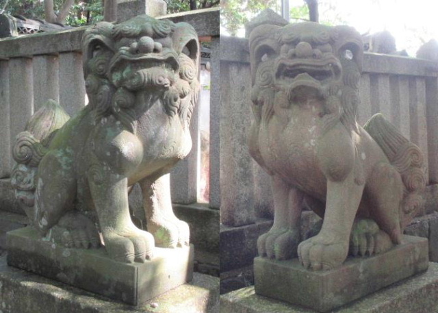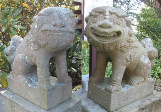 両髪の所がくり抜かれていてまるでツインテールの様な髪型の狛犬、初めて見る表現に少し見入ってしまいました。