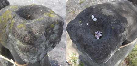 20140413 八幡宮 1849年8月15日奉納のわんこ。 角穴 由緒によると 平将門の乱を平定し下野守に任じられた藤原秀郷が、山城の国の男山八幡宮を勧進したと伝えられます。 藤原秀郷の子孫である佐野氏が鬼門封じの神社として崇敬しましたが、江戸時代に佐野氏が改易となった為、犬伏の住民守護の郷社となりました。