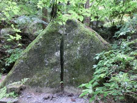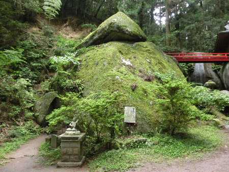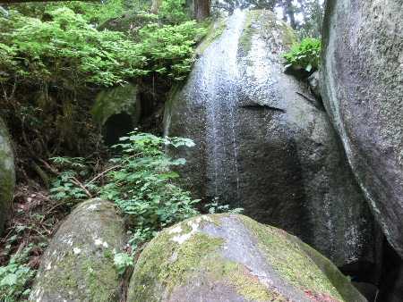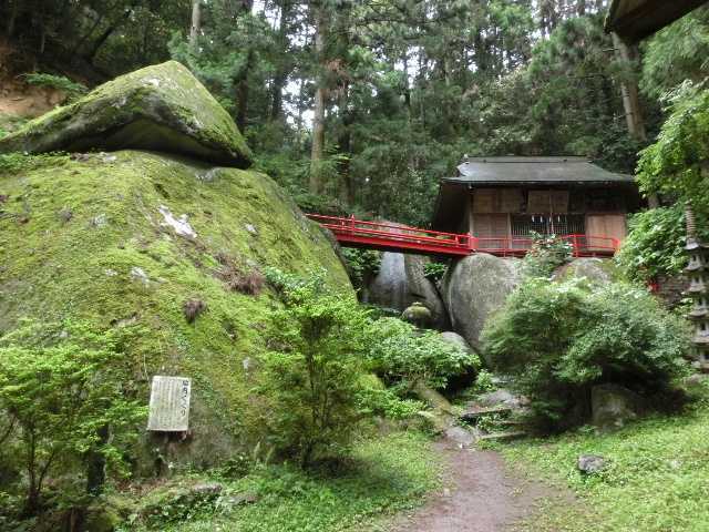 20180610 名草 厳島神社 名草巨石群 ここは、わんこ不在。 小雨が降っていましたが、参道の木のおかげで傘いらず。 途中、石灯籠発見。 よくこんな所に置いたなと思える場所にありました。 正面の鳥居から暫く歩いて行くと、鳥居が見えて来ました。 到着〜 割れてます。 社殿横には、胎内くぐりで知られる御供石があります。 これは、巨石が複数重なって出来た隙間を通り抜けることができます。