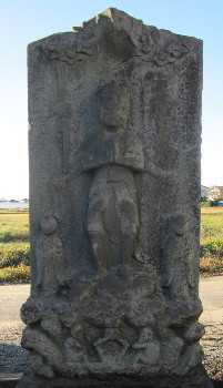 像容は通形で、右に「造立者為妙色増長民屋豊穣」左には「寛政五丑(1793)十一月吉日願主当村中」と彫られている。