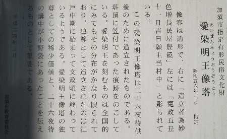 この愛染明王像塔は二十六夜待供養のために造立されたものである。