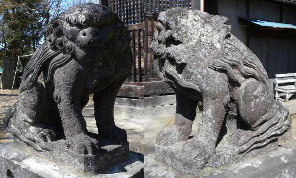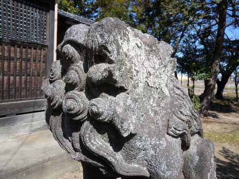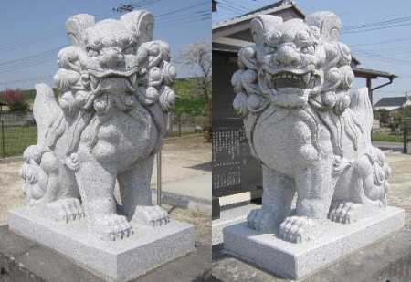 右の狛犬、顔の半が欠けてます・・・
