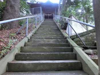 20130923 前玉神社 細身のわんこ、モコモコ毛の表現が無い。 前玉神社は、延喜式(927年)に載る古社で、幸魂神社ともいいます。 神社よりつけられた、前玉郡は後に埼玉郡へと漢字が変化し、現在の埼玉県へとつながります。 前玉神社は、埼玉県名の発祥となった神社であると言われています。 本社は浅間塚と呼ばれる古墳の上に建てられてます。 正面の石段を登り、左に回り込むと更に石段があり、その上に本社があります。
