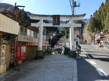 大鳥居をくぐって、ロープウェイを目指し参道を歩く。