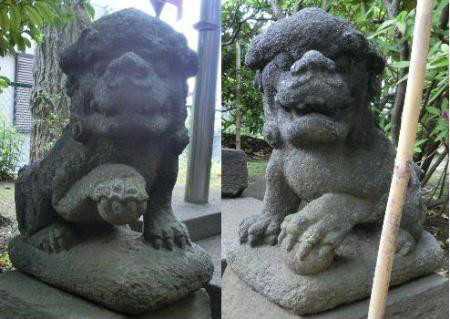 20150425 中井御霊神社 奉納 1927年09月27日 石工 米井熊吉 獅子山です。 子狛犬。 奉納 不明 石工 不明 他の場所から持ち込まれたものと思われます。 奉納 1715年 石工 不明 平成26年、指定有形文化財。 阿・吽が逆です。