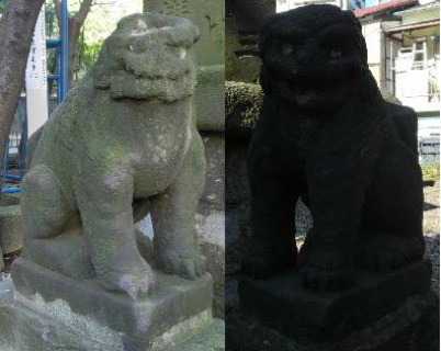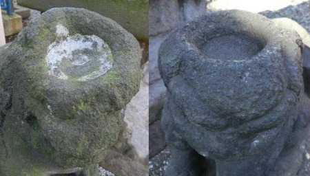 昔、この神社のすぐ前には海があり、わんこの頭の穴に油を満たし灯心を入れ火をつけ海上から見える様にしていたとの事です。