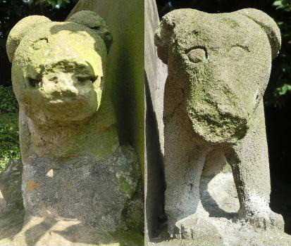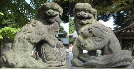 20151024 沼袋氷川神社 石灯籠のレリーフ。 奉納 1864年01月 石工 栄太郎 ・ 栄治郎 力石です。 祭礼の余興で行われた力比べに使われた石です。 石には、重さ・奉納日・奉納者・石を持ち上げる事が出来た者の名、等が刻まれています。 奉納 不明 石工 矢嶋七良ヱ衛 ・ 矢嶋??吉 肋骨の表現から狼と判断