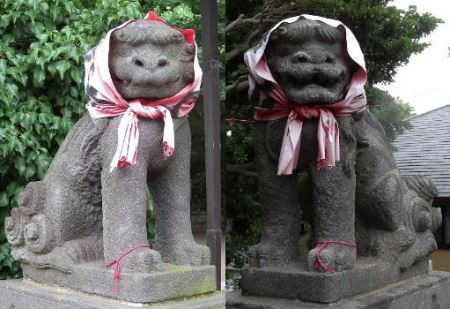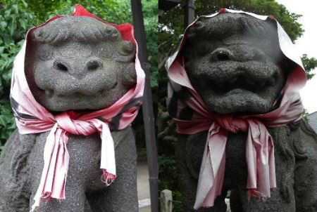 20140628 小動神社 ここのわんこは、ほっかむりが最も似合うわんことして知られています。 このほっかむりは、漁協理事の三浦さんが年の暮れに掛け替えていて、 祖父の代からされているとの事です。 日本参道狛犬研究会 第66回 狛犬と社寺めぐり 鎌倉編