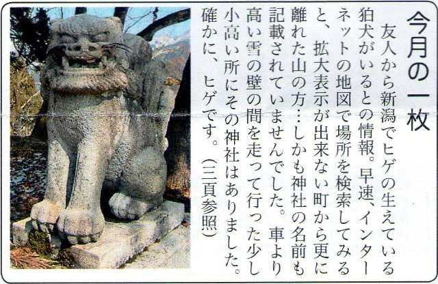 友人から、新潟でヒゲの生えている狛犬がいるとの情報提供。