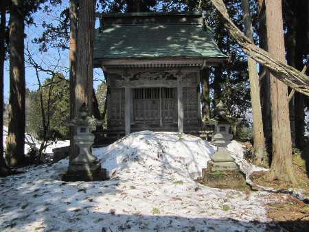多少の除雪はしてありましたが、車より高い雪の壁の間を走って行った少し小高い所にその神社はありました。