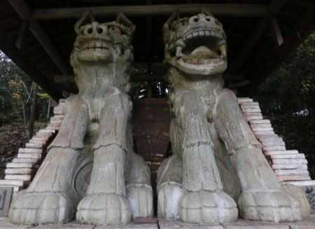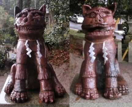 20141108 八王子神社 この神社には、ギネス認定されている世界一大きなわんこがいます。 雨で台座が濡れて文字が読めない・・・ 美濃焼わんこ 奉納 平成02年11月 美濃焼わんこ 奉納 平成02年11月 ギネス認定・高さ3.3mの美濃焼わんこ。 大川窯四代目の羽柴与左衛門景度のわんこをモデルに造られてます。 背中のレンガは窯の跡でここでわんこを焼きました。 (ふるさと創生事業 一億円)