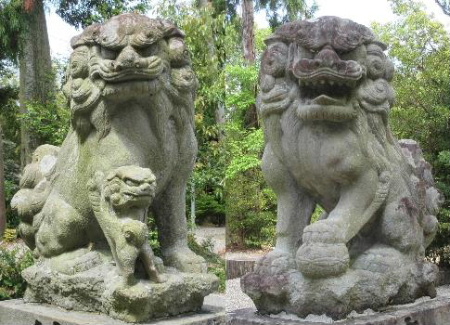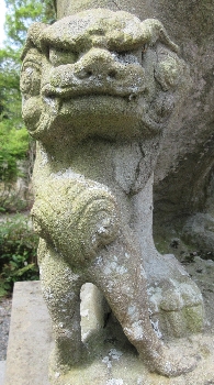首が180度回っている子狛犬。