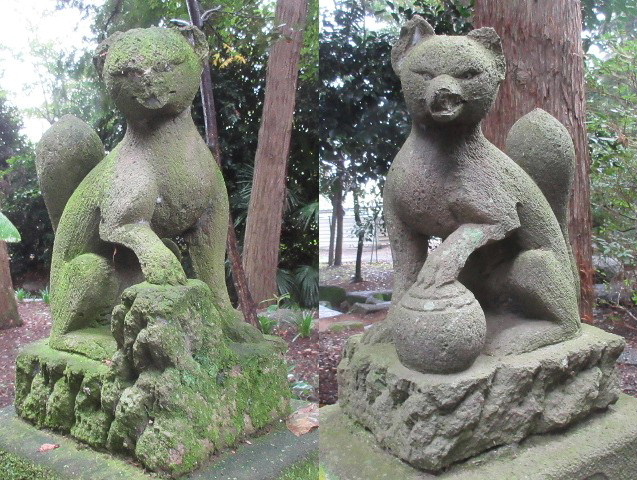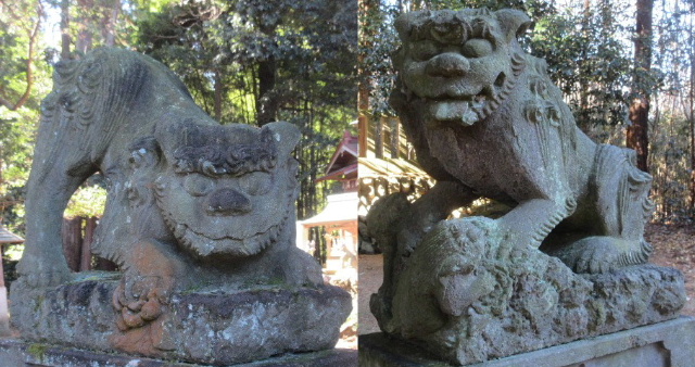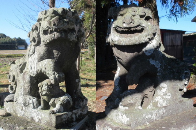 左が狛犬・右がライオン、おそらくこの石工さんは分かっていて彫ったのだと思う。
