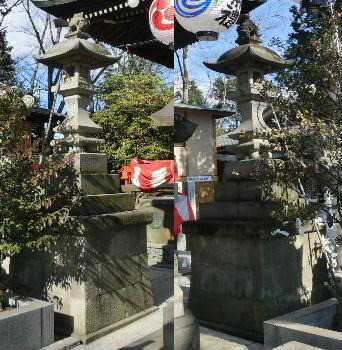石燈籠の屋根の上にわんこ。