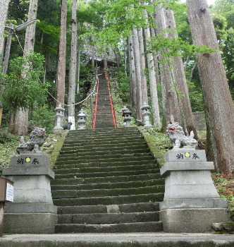 長野県美麻村の載神社の石段も急でしたが、ここのは更に急で高〜い