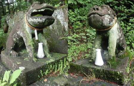 20130623 坂本八幡宮 奉納 1723年 この宿場は、1625年に付近の住民と安中や高崎から人々を移住させて作られた宿場で、地名坂本の由来は、碓井坂の麓、という意味です。 背中側、なかなか良いです。 造りが細かい・・・ この切り株・・・ 大きい・・・ ? ??? と、その前に・・・ 貴方達・・・ 本当に犬???